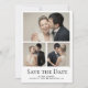 Modern, minimalist photo grid wedding save the date card. customize with three photos, your wedding date, names, and location. Instantly generate a QR code for your wedding website on the back as well..