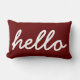 Einfach aber schön hallo in elegantem weißen Skript auf einem maronen Hintergrund.