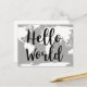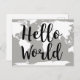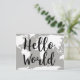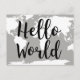 Moderne hallo Welt Drehbuch und weiße Welt kartieren Silhouette über grau.