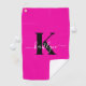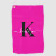 Modern Hot Pink Black Script Monogram Golfhandtuch