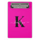 Modern Hot Pink Black Script Monogram Mini Klemmbrett