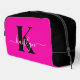 Modern Hot Pink Black Script Monogram Waschbeutel
