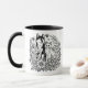 Celebrate the beautiful friendship between cats and dogs with this charming coffee mug featuring a majestic husky and adorable cat surrounded by an enchanting garden of blooming flowers. The contemporary black and white line art showcases intricate botanical details with flowing leaves, delicate petals, and decorative flourishes that frame these beloved pets perfectly. The detailed illustration captures the husky's distinctive facial markings and alert expression alongside the cat's sweet, content demeanor, creating a heartwarming scene that any pet lover will treasure. This modern artistic design brings elegance to your daily coffee ritual while celebrating the special bond between our furry family members.