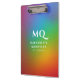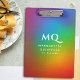 Fügen Sie Ihrem Arbeitsbereich einen Pop Farbe hinzu mit unserer Modern Initials White Monogram Colorful Rainbow Clipboard! Mit einem fetten Hintergrund des Regenbogengrades werden Ihre personalisierten Monogramm/Initialen und der vollständige Name in schlichter weißer Typografie angezeigt. Ideal für Profis, Lehrer, Schüler oder alle, die stilvolle und funktionelle Büroaccessoires Lieben haben. Ideal für das Büro, das Zuhause-Büro oder als nachdenkliches Geschenk für Freunde und Kollegen.