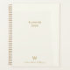 Moderne Ivory Gold Script Monogram Planer. Ein modernes, elegantes Monogramm-Design mit handgeschriebener, minimalistischer Schrifttyp-Schrift und Sans Serif Block Typografie auf einem eleganten, pastellfarbenen Elfenbeinhintergrund. Das Monogramm und der Name können leicht personalisiert werden.
