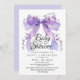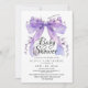 Modern Lavender Bow and Flowers Baby Shower Einladung