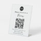 Modern Leave us a review QR code Pedestal Sign. Modern, elegant and simple business card to invite customers to leave you a review using a QR code to direct them to your social media, or website this vertical business card features a custom business logo and additional text for tagline, or contact information. The perfect strategy to build an audience, increase followers, grow your customer base and create community to generate quality advertisement.