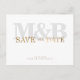 Zeitgenössisches White, Gray & Gold Monogramm Save the Date. Hochzeit. Vor- und Nachnamen. elegant. Einfach.
