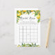 Die "Lemon Citrus Bridal Bingo Game Paper Sheets"! Diese lebendigen und unterhaltsamen Spielblätter sind ideal, um Ihrer Brautdusche ein interaktives und unterhaltsames Element hinzuzufügen. Jedes Blatt mit hellen Orangen, zesty Zitronen und üppiger Vegetation ist mit einem zauberhaften Bingogitter zum Thema Zitrusfrüchte gestaltet. Die Gäste können sich beim Spielen an Plätzen erfreuen und eine lebhafte und festliche Atmosphäre zu Ihrer Veranstaltung hinzufügen. Aus hochwertigem Papier gefertigt, garantieren diese Blätter eine lange Haltbarkeit und eine einfache Handhabung während des Spiels. Unsere Bingo-Spielepapiere eignen sich ideal für die Dekoration von Brautduschen oder als eigenständige Aktivität und versprechen, die Gäste zu begeistern und unvergessliche Momente zu schaffen. Passen Sie Ihre Bingo-Blätter mit zusätzlichen persönlichen oder spezifischen Gestaltungseinstellungen an, indem Sie uns Ihre individuellen Optionen mitteilen. Bleiben Sie auf dem Laufenden über unsere neuesten Produkte und Designinspirierungen. Lassen Sie sich von unseren Lemon Citrus Bridal Bingo Gamepapierblättern verzaubern und bringen Sie allen Spaß und Freude mit Zitrusfrüchten!