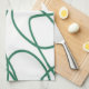 Modern Line Art: Grün auf Weiß Geschirrtuch