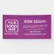 Modernes, einfaches und auffälliges "Now Hiring"-Banner, das einen anpassbaren magentafarbenen Hintergrund mit der immer beruflichen und leicht lesbaren weißen Typografie verbindet. Vielseitiges Design passt sich jeder Branche oder Art von Unternehmen an. Aktualisieren Sie einfach die Textbereiche auf Ihre spezifischen Marketing- und Werbebedürfnisse.