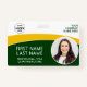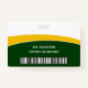 Represent your business in style by supplying staff with with modern and professional identification badges. Uploading your company logo, an employee photo, and your security barcode is easy and quick. Using the templates for your company name, employee name, job title, department/team/division, employee ID#, and expiration date is simple and straightforward. The dark green, yellow and white design is classic yet trendy. This name badge provides security for your company and staff, while at the same time presenting corporate branding with a stylish appearance.