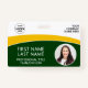 Represent your business in style by supplying staff with with modern and professional identification badges. Uploading your company logo, an employee photo, and your security barcode is easy and quick. Using the templates for your company name, employee name and job title, employee ID#, and expiration date is simple and straightforward. The dark green, yellow and white design is classic yet trendy. This name badge provides security for your company and staff, while at the same time presenting corporate branding with a stylish appearance.