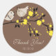 Niedliche Liebesvögel bedanken sich bei einem stilvollen Brautparty-Rundaufkleber mit Braut- und Bräutigvögeln auf einem Ast mit gelbem Set auf schokoladenbraunem Hintergrund. Ideal für Brautparty Gefallen Tags & Umschlag Aufkleber! Passen Sie sich mit Ihren Brautparty-Informationen an und Sie sind alle Set zu gehen! Entsprechende Einladungen und Briefmarke in unserem Shop www.celebrateitinvites.com.