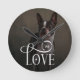 Modern Love Custom Dog Pets Photo Monogram Runde Wanduhr