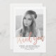 Vielen Dank an Ihre Freunde und Familie mit einem schicken, modernen Abschluss danke Ihnen Fotokarte. Das Design verfügt über einen trendigen Skript-Schriftart mit einer Imitat Rose Goldfolie Stil und Platzhaltern für ein Bild und benutzerdefinierten Text.