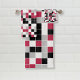 Dieses farbenfrohe Set an Badehandtüchern zeichnet sich durch ein geometrisches, mehrfarbiges Muster aus, das mit einem weißen Gitter in zauberhafter Magenta, schwarz, grau und weiß gehalten ist. Die Quadrate sind in einem zufälligen Muster gefärbt, und Sie können die Farben im Design-Tool so bearbeiten, dass sie Ihrem Badfarbschema entsprechen.