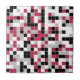 Diese Keramik-Kachel weist ein farbenfrohes geometrisches Muster in der trendigen Viva Magenta auf, schwarz, grau und weiß, mit weißem Gitter. Die Quadrate sind in einem zufälligen Muster gefärbt und Sie können die Farben im Design-Tool bearbeiten.
