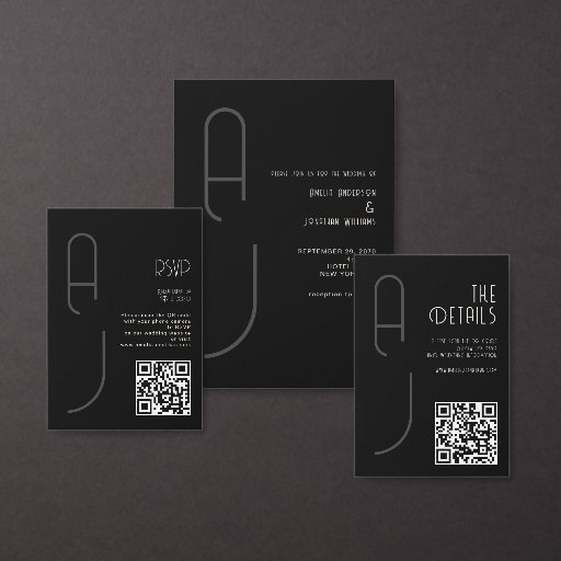 Modern Matte Monogram Minimal Wedding Black White Invitation