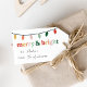 Colorful, modern holiday gift tags featuring a string of Christmas lights at the top of the design. The phrase "Merry & Bright" is featured in trendy typography with shades of red, gold, orange, blush pink, & green. The cute merry and bright gift tags provide space for the gift recipient's name. The colorful holiday gift tag reverses to a dark green background with subtle white snow. Designed to coordinate with our Modern Merry & Bright holiday card collection.