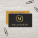 Eye-catching business cards feature an abstract element in faux rose gold, surrounding your initials or monogram in modern calligraphy script. Personalize with two custom text fields below your name and title or business name. Add your full contact details to the back. Suitable for any occupation; example shown for hair and makeup artists