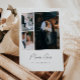 Modern Minimal 3-Photo Script Lettering Wedding Thank You Card. Customize this elegant, black and white wedding thank you card with 3 wedding photos of your choice, bride and groom names, your wedding date, location, and thank you message on the back.