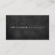 Ein berufliches und modernes Visitenkartendesign mit schwarzem Holzkornhintergrund. Ihr Name oder Firmenname ist in der Mitte in Weiß- und Grautönen gehalten. Dieses doppelseitige Kartendesign bietet viel Platz auf der Rückseite für Ihre Kontaktinformationen und Details. © 1201AM Design Studio