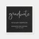 Add a polished finishing touch to your celebration with these modern graduation party napkins featuring bold black and white design and elegant script lettering. Personalized with the graduate’s name, school, and class year, these custom napkins elevate any graduation open house, party, or reception.