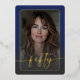 Modern Minimal Blue Foto Fiftieth Birthday Folieneinladung