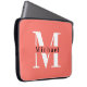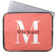 Modern Minimal Coral Initial + Name Monogram Laptopschutzhülle