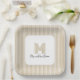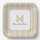 Modern Minimal Gold Stripes Monogram Paper Plates you can customize with your monogram and name.