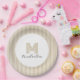 Modern Minimal Gold Stripes Monogram Paper Plates you can customize with your monogram and name.