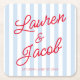 This is a Modern Minimal Minimalist Blue Stripes Red Wedding Paper Coasters!