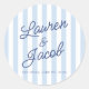 Modern Minimal Minimalist Blue Stripes Wedding Runder Aufkleber