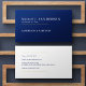 Elegant luxury attorney business card designed in a refined, name-forward layout for lawyers and law firms who prefer understated professionalism. The clean typography and classic navy and gold color palette create a confident, timeless look ideal for client meetings, court appearances, and formal correspondence.