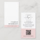 Moderne, vertikale Visitenkarten mit Ihrem Namen und Titel auf der Vorderseite und anpassbare Vorlagenfelder für Ihre Kontaktinformationen, Logo und QR-Code auf der Rückseite. Weiß und rot rosa oder Sonderfarben. Mit dem Designwerkzeug können Sie Schriftart und Farben ändern, Elemente verschieben und verändern.