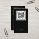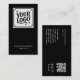 Modern black QR code business card design for professionals who want fast, easy connections. The front features your logo on a deep black background beside a bold QR code and social media icons, giving clients multiple ways to reach you with a single glance. The back keeps everything clean and readable with your name, title, phone, email, website, and address set in crisp white type. This minimalist layout suits creatives, tech professionals, consultants, and small business owners who prefer a polished modern look. Use the customization tools to upload your own logo, link your QR code, and edit the contact details to match your brand.