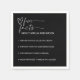 Modern Minimalist Black & White Fun Facts Wedding Napkins. Celebrate your love story with these charming 'Fun Facts About the Couple' wedding paper napkins. Featuring a modern, chic black background and elegant white script font, these napkins add a personal and engaging touch to your reception tables or bar area. Share unique details about how you met, shared experiences, and special moments that led you to your big day, making your wedding celebration even more memorable for your guests. These napkins are a delightful way to spark conversation and allow guests to get to know you better as a couple. Works great for rehearsal dinners, bridal showers and engagement parties too!