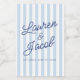 Modern Minimalist Blue Stripes Wedding Mini Weinetikett