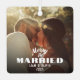 An elegant and chic ornament with a unique modern notable script. The year and names are customizable. This newlywed ornament has a couple's photo that can be changed with your own photo. The married script is in typewriter style while the merry is chic and stylish whimsical calligraphy. With Mr. and Mrs.in the back with family names. Grab this ornament and make this occasion captured forever with elegance and style.