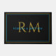 A modern minimalist couple's monogram doormat featuring bold gold initials and deep blue names, framed by a sleek double border on a rich black background. The clean, elegant layout adds a sense of luxury and personal style to your front door. Whether you’re newly engaged, newlywed, or celebrating years together, this modern design strikes the perfect balance between timeless and trend-forward. A meaningful gift idea for couples who appreciate simplicity, statement design, and a personalized welcome.