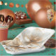 A reduced color image of a white and gold Poppy highlights the whole face of this plate.