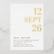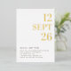 This modern minimalist wedding invitation features a real gold foil date, creating a refined and luxurious focal point against a clean, contemporary layout. The elegant typography and generous white space give the design a timeless, editorial feel. The back side keeps the design balanced and elegant while allowing couples to add an engagement or lifestyle photo without overwhelming the invitation. Beneath the photo, there is space for a wedding website or RSVP link, making it easy for guests to find additional details. Perfect for modern, minimalist, elegant, and contemporary weddings, this invitation works beautifully across all seasons - from spring and summer celebrations to fall and winter ceremonies.