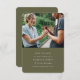 Announce your big day with this minimalist modern photo save the date card in olive moss. Featuring a full photo design with a simple and elegant text layout, this card is perfect for couples who love a clean, contemporary aesthetic. Personalize it with your wedding details and a favorite engagement photo to create a stylish keepsake for friends and family. Ideal for rustic, outdoor, or modern wedding themes.