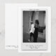 This modern polaroid save the date card features a simple, minimalist design that includes a vintage polaroid photo frame for your photo. The design is accompanied by text that is written in a trendy, techy monospace font for a fresh, fun vibe. The back of the card also includes an editable placeholder to indicate your wedding website URL that can also be deleted if the URL is not yet available.