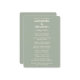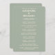 A modern minimalist wedding program card in soft sage tones.