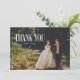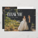 Modern Minimalistic Typography 2-Photo Wedding Thank You Card. Designed with "thank you" in large, bold typography, personalize this elegant and simplistic thank you card with two of your favorite wedding photos, bride and groom names, and your custom thank you message on the back.