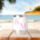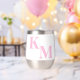 Dieses Wein-Taumelglas hat nur Ihre zwei Buchstaben Monogramm in großen blassrosa Buchstaben. Es wird nicht fehlen, wem dieses schöne Glas gehört! Modern, elegant und trendig.