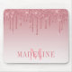 Modernes, elegantes und trendiges, rosafarbenes Glitzer-Mousepad personalisiert mit Monogram Initial und Name. Glitzer mit Glitzern trinken.