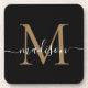 Modern Monogram Black Gold Feminine Script Name Getränkeuntersetzer